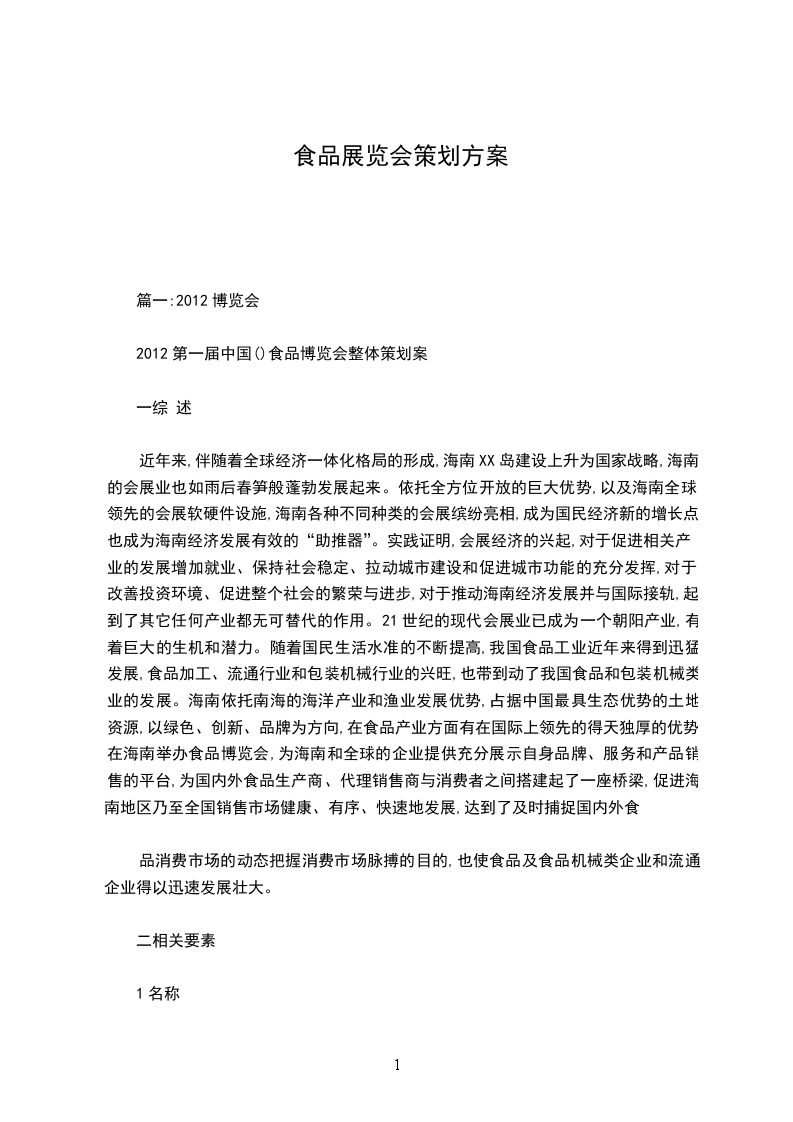 2024第一届中国()食品博览会整体策划案