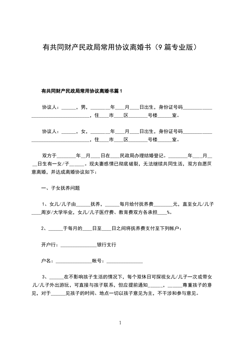 无共同债权民政局离婚协议书模板篇9