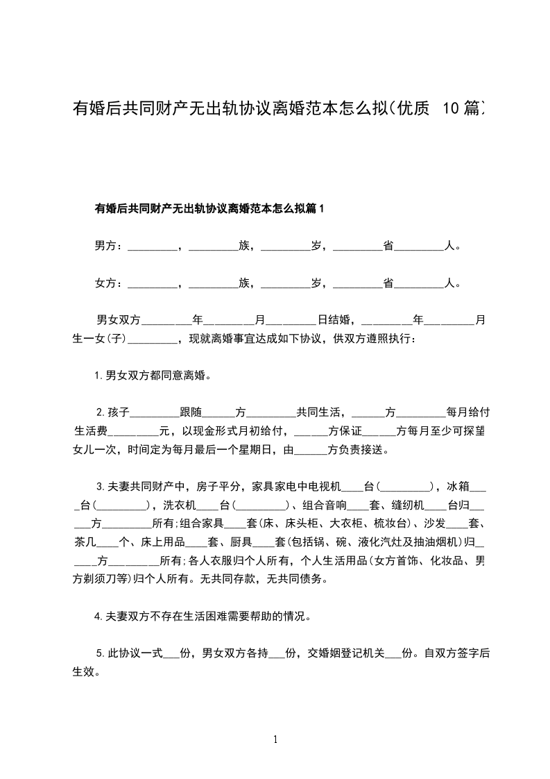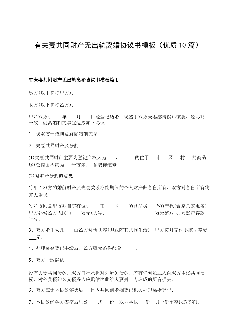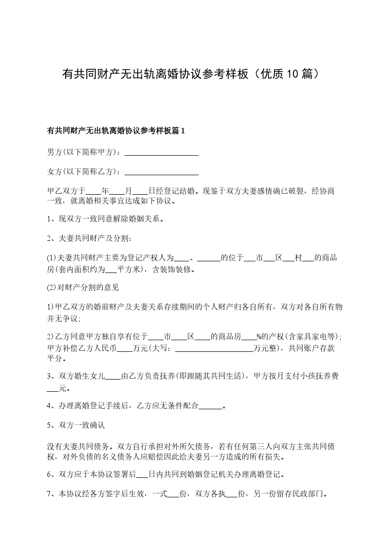有共同财产无出轨离婚协议书样本篇10