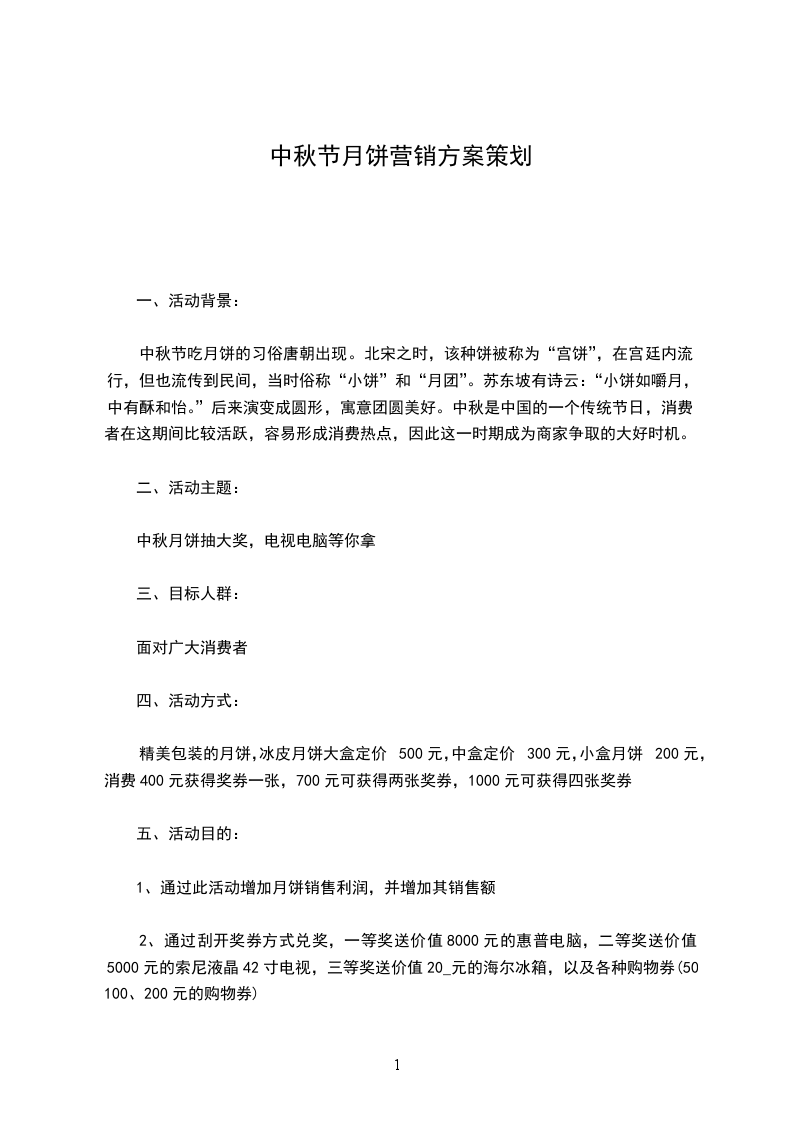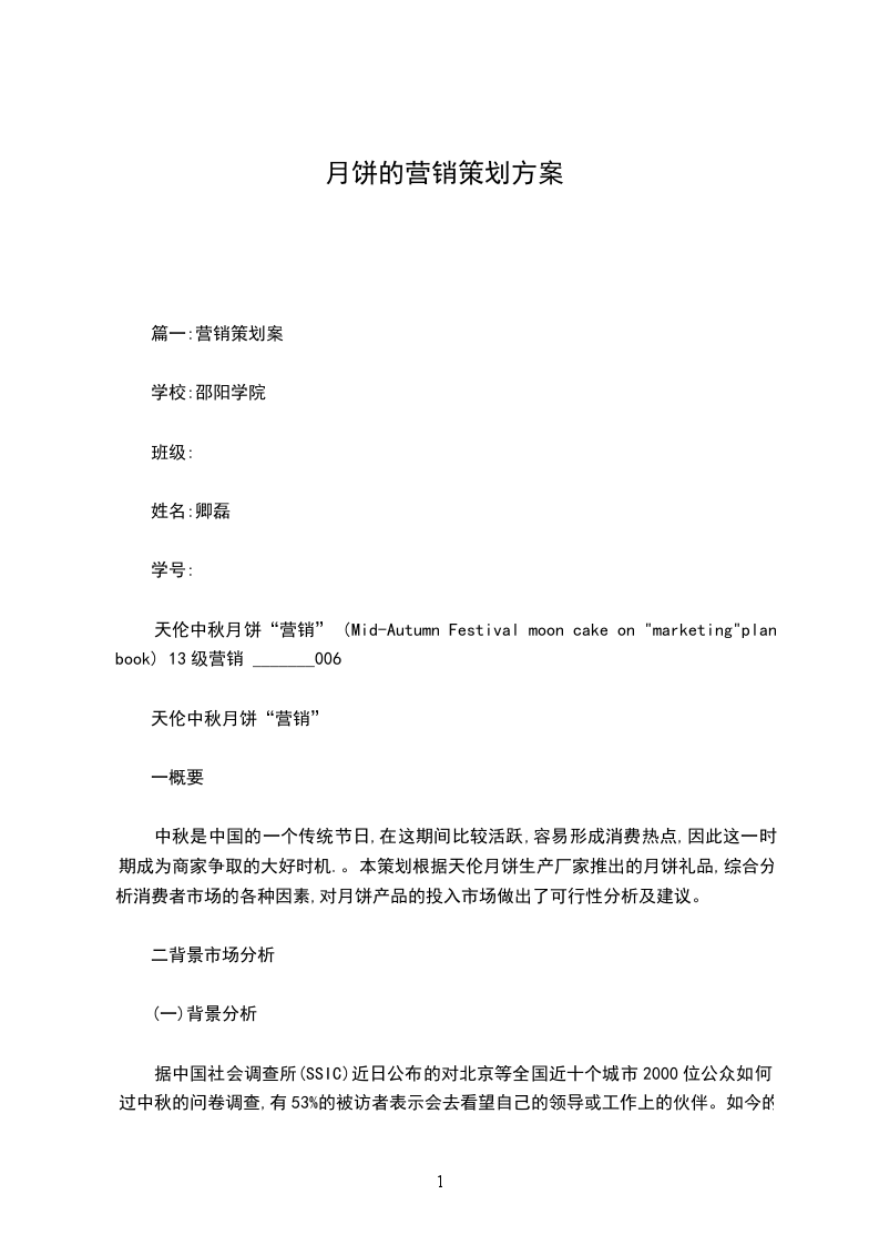 天伦中秋月饼“营销” (Mid-Autumn Festival moon cake on "marketing"plan book) 13级营销 _______006