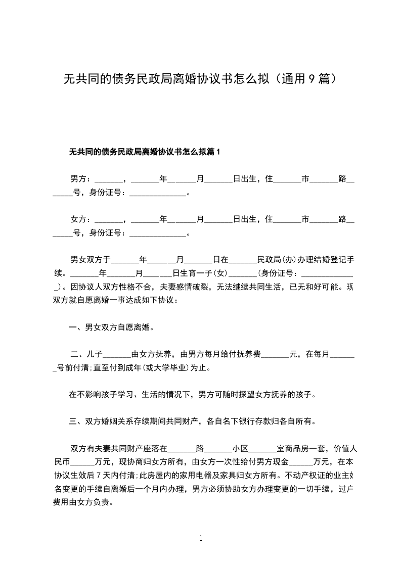 九、本协议一式三份,自婚姻登记处颁发离婚证之日起生效,男、女双方各执一份,婚姻登记机关存档一份。