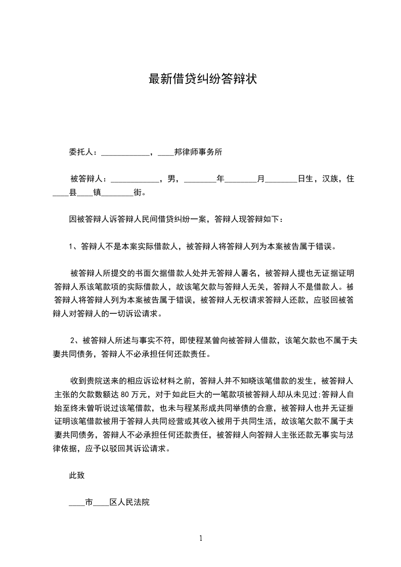 答辩事项:答辩人请求人民法院依法驳回被答辩人不合理且不合法的诉讼请求。