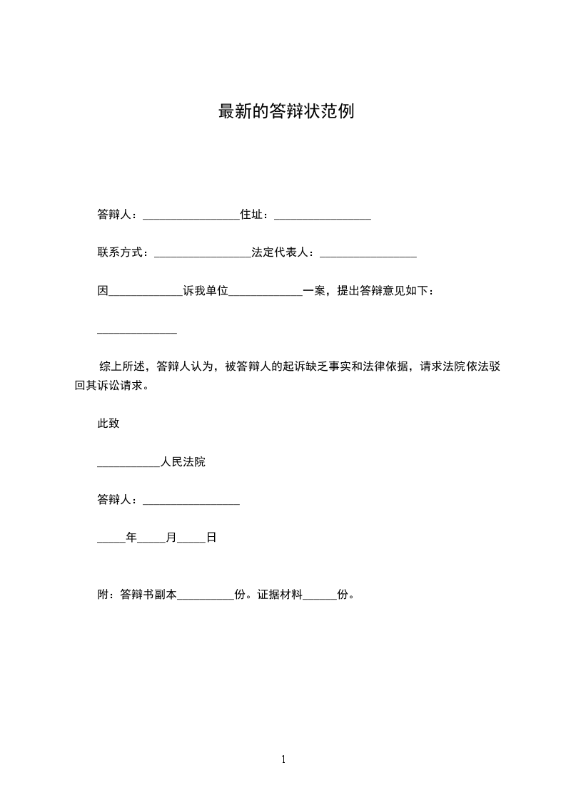 附:答辩书副本_____份;