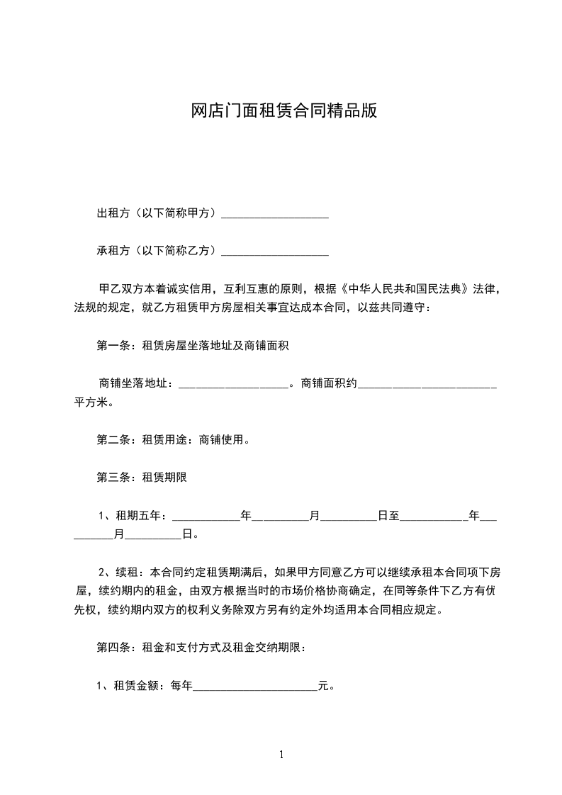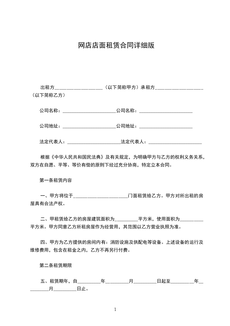 1.甲方将其合法拥有的座落于________________街______________招待所以__________门面房小间出租给乙方用于经营。该门面建筑面积共______________平方米;