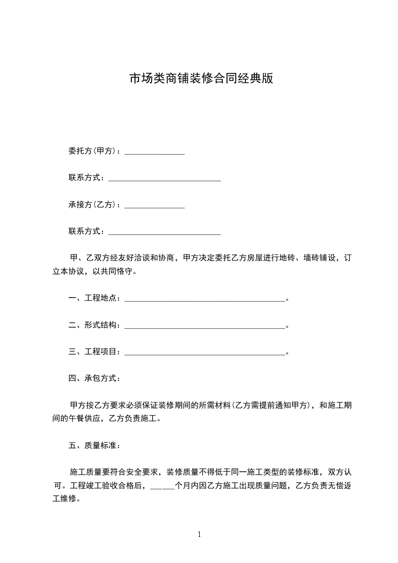 五、租赁期间房屋修缮出租方将房屋交给承租方后,承租方的装修及修缮,出租方概不负责,其经营情况也与出租方无关;租期结束或中途双方协商解除合同,承租方不得破坏已装修部分及房屋架构。
