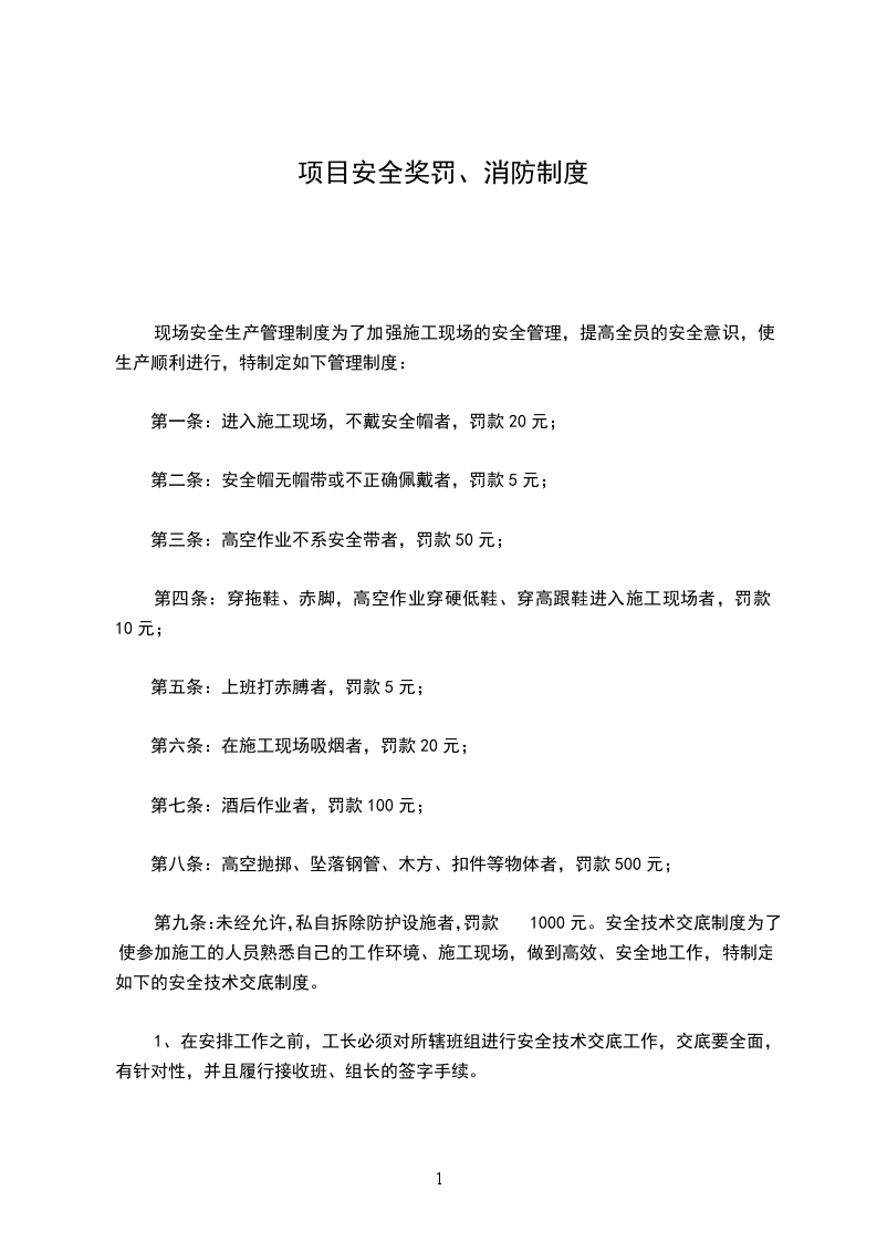 第九条:未经允许,私自拆除防护设施者,罚款1000元。安全技术交底制度为了使参加施工的人员熟悉自己的工作环境、施工现场,做到高效、安全地工作,特制定如下的安全技术交底制度。