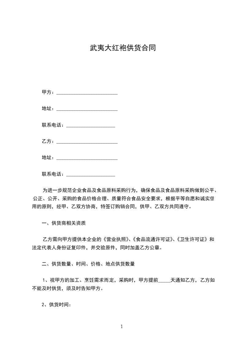 1、视甲方的加工、烹饪需求而定,采购时,甲方提前_____天通知乙方,乙方如不能及时供货,须及时告知甲方。