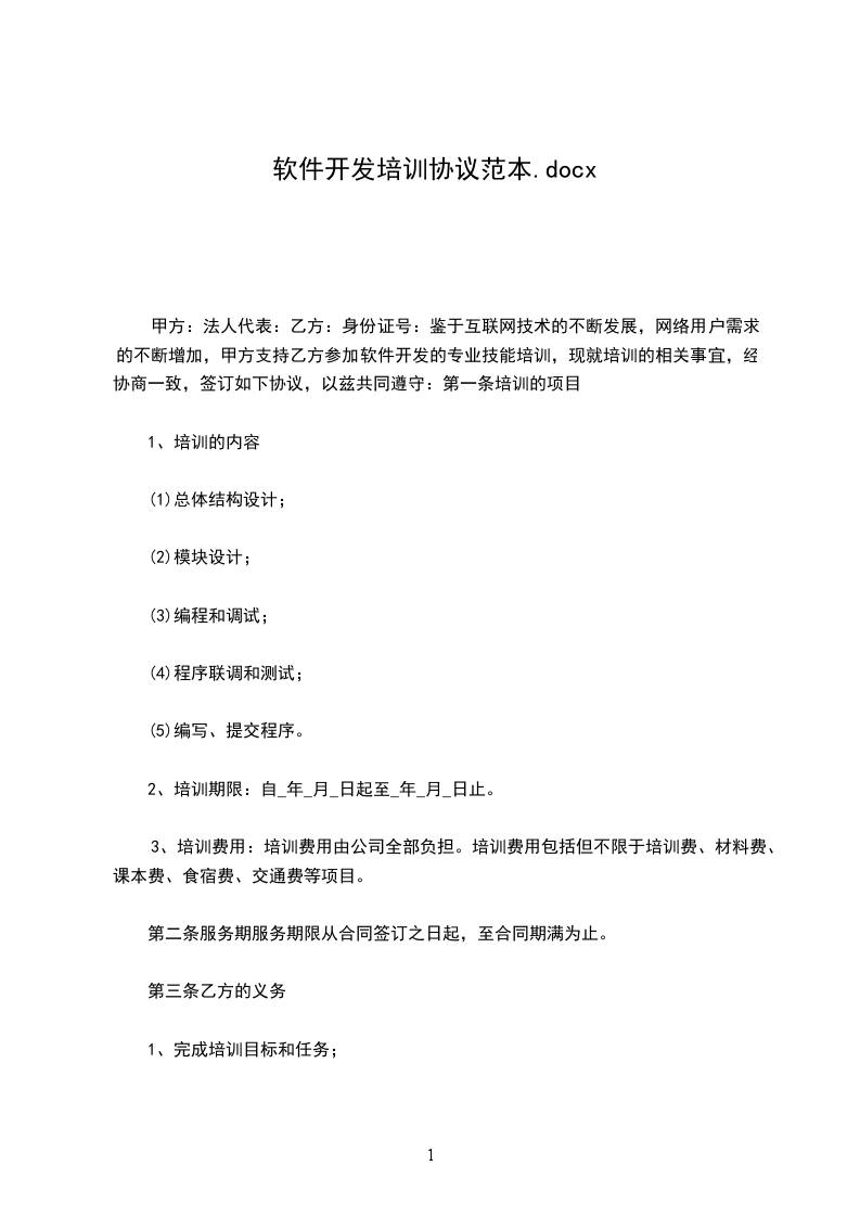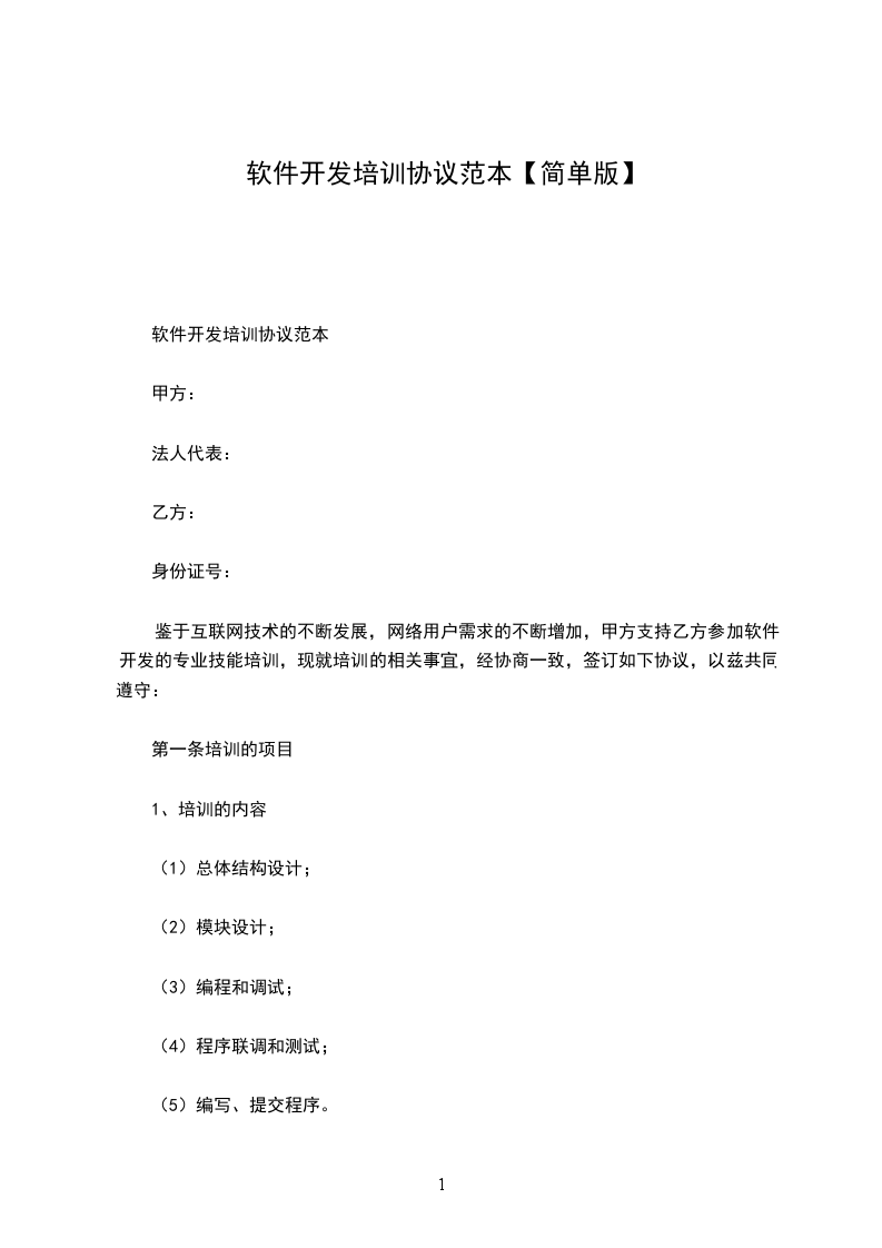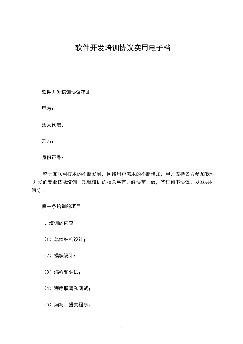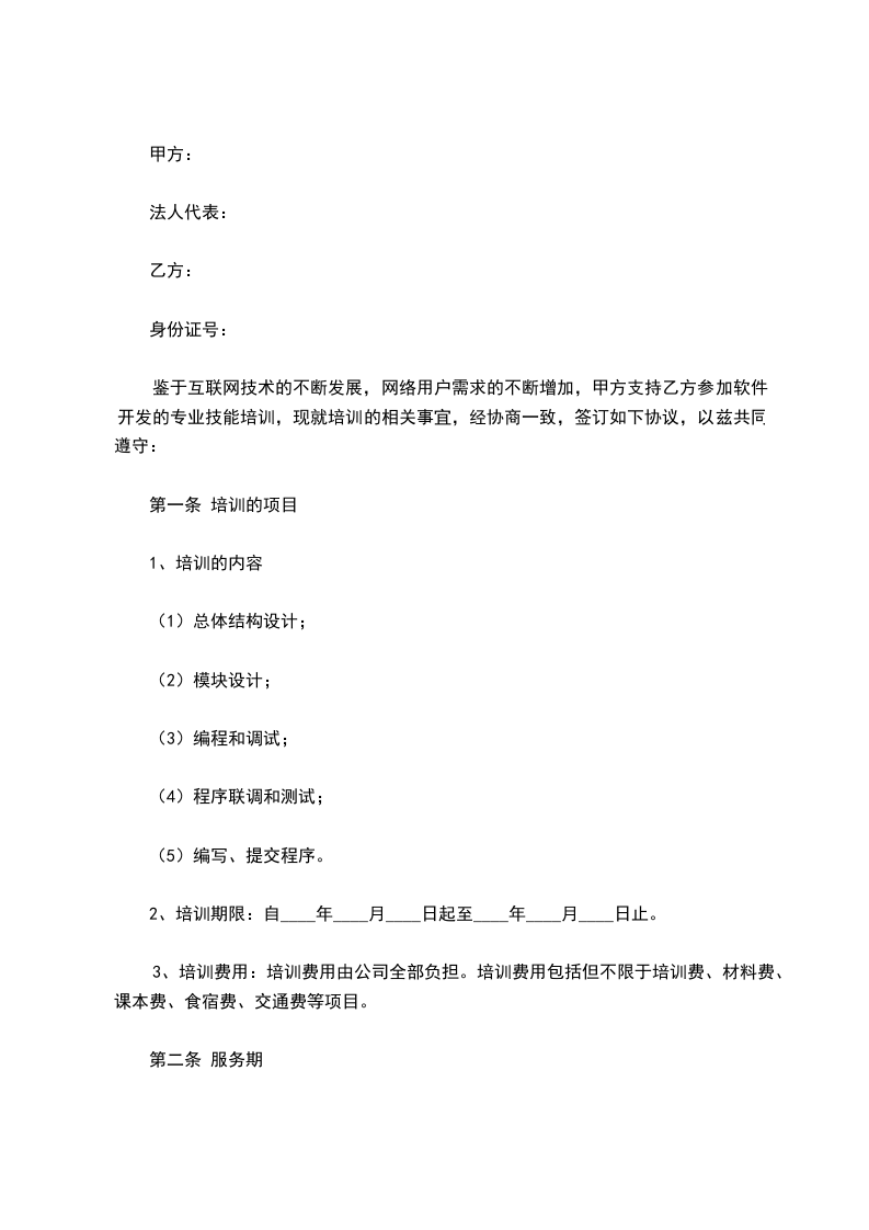 鉴于互联网技术的不断发展,网络用户需求的不断增加,甲方支持乙方参加软件开发的专业技能培训,现就培训的相关事宜,经协商一致,签订如下协议,以兹共同遵守: