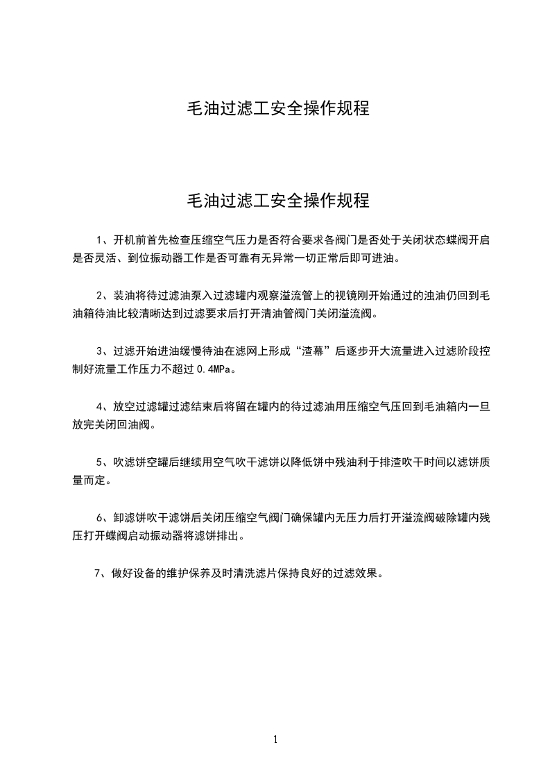 4、放空过滤罐过滤结束后将留在罐内的待过滤油用压缩空气压回到毛油箱内一旦放完关闭回油阀。