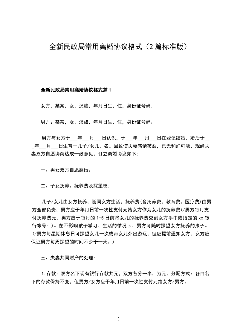 2024年民政局常用离婚协议书篇2