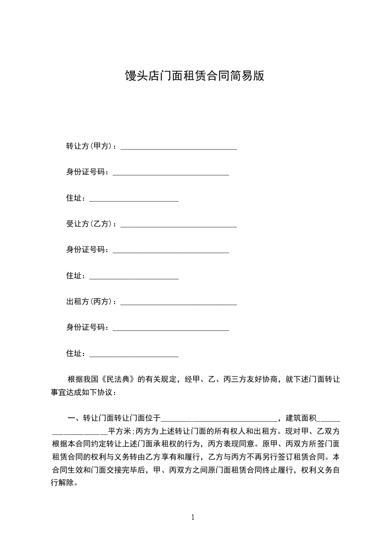 一、甲方将位于_______________________号门面租赁给乙方。甲方对所出租的房屋具有合法产权。
