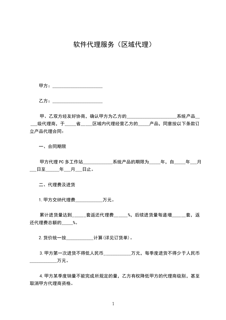 2、乙方代理甲方提供的《_________软件》,并从事产品的售后服务和宣传促销等合法商业活动。