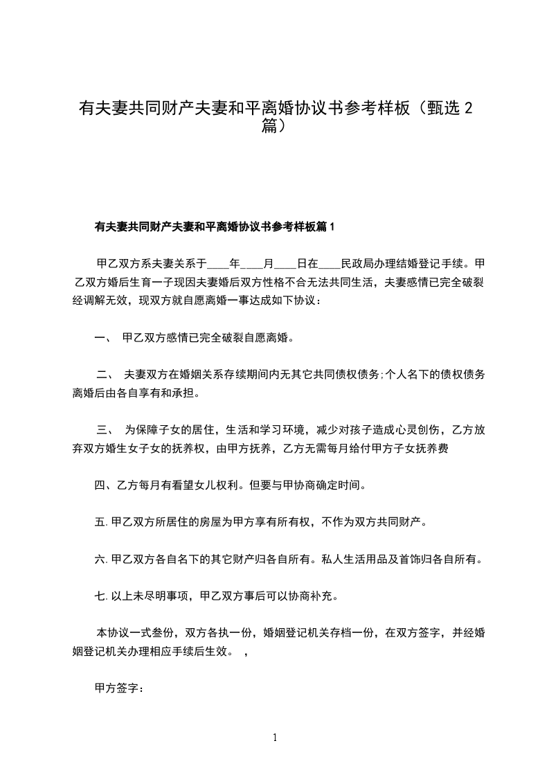 有财产夫妻协商协议离婚书怎么拟篇2