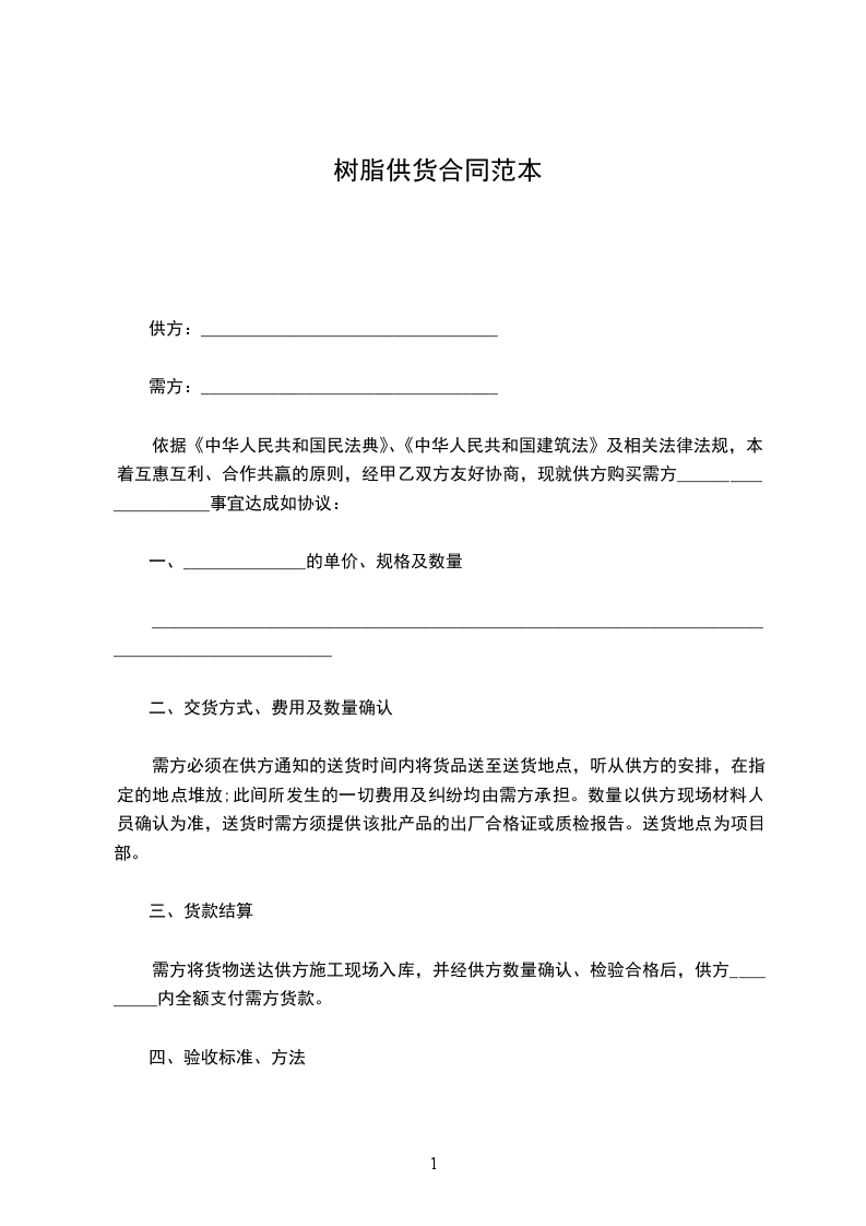 树脂供货合同范本
