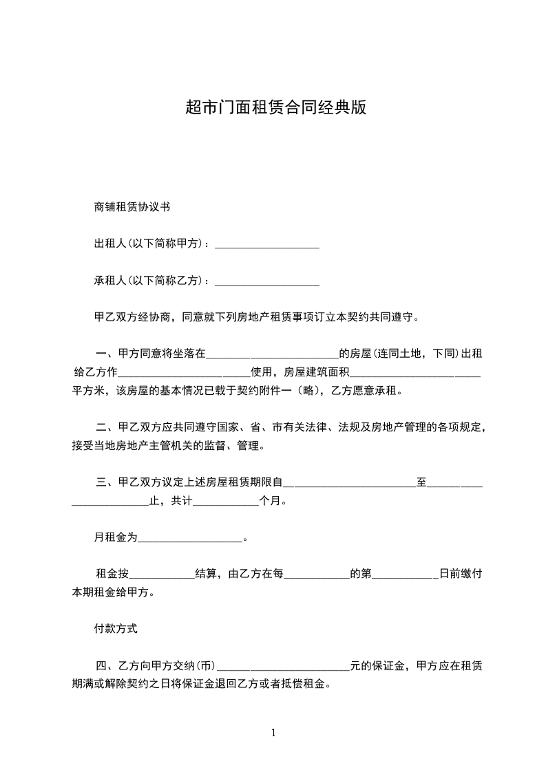 6、乙方应向甲方支付保证金人民币为__________________元,乙方期满后退回。