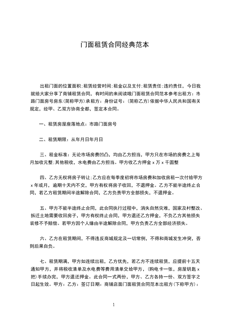 乙方租用甲方房屋作营业商铺,双方经充分协商,订立本房屋租赁合同,共同遵守。