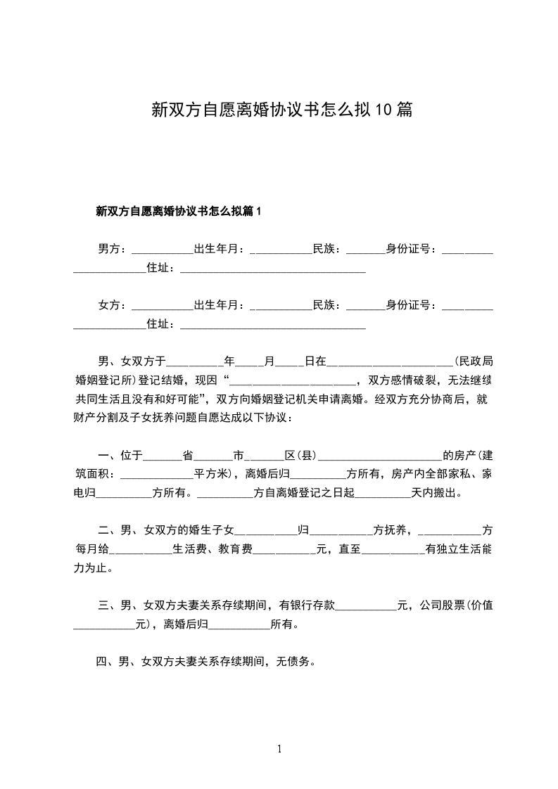 关于双方自愿离婚协议书怎么拟篇10