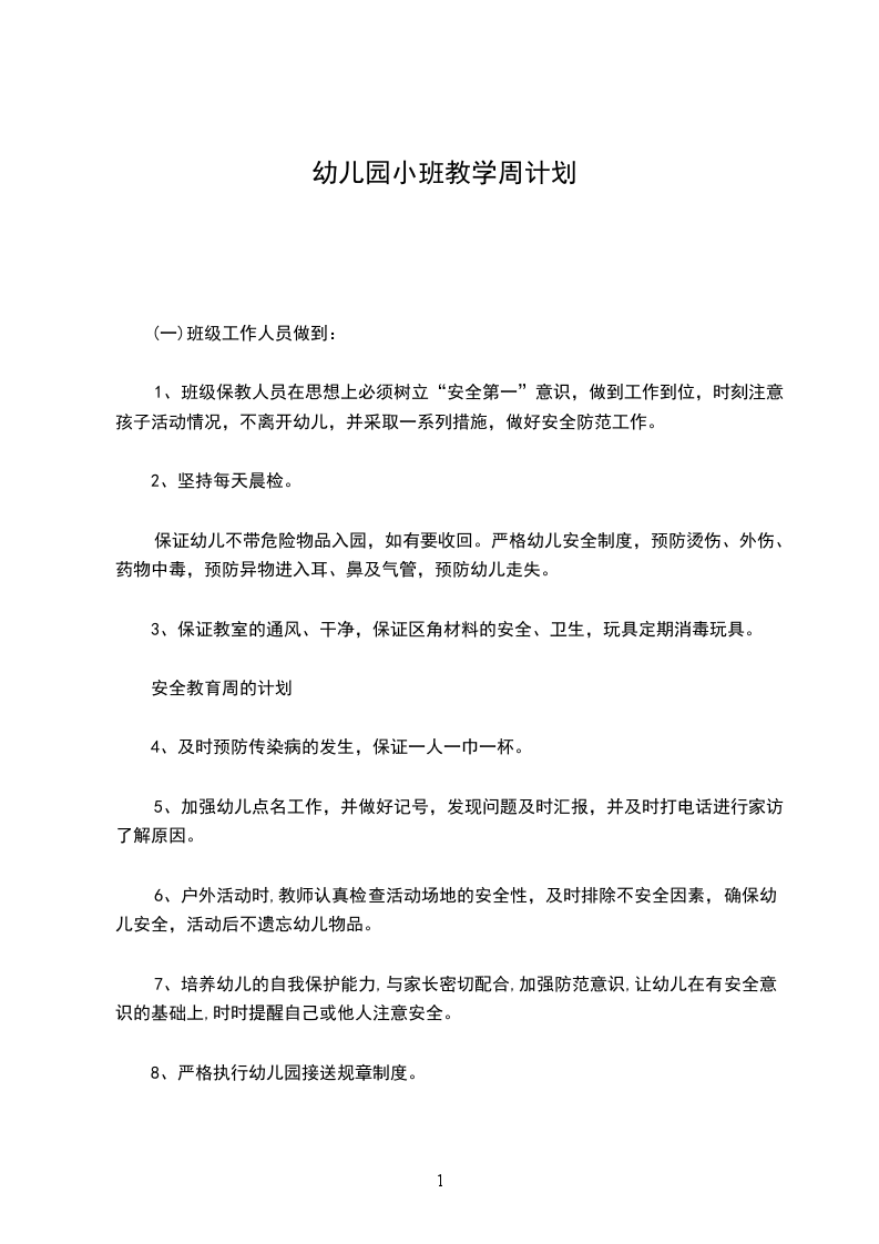 以上是本班在安全方面的计划,各种活动将在在幼儿园一日生活、教育教学活动、游戏的各个环节中自然地进行,通过形式多样的活动帮助幼儿懂得自我保护的简单知识和方法,才能真正保证幼儿的安全。在今后的工作中,我们更会牢固树立“安全责任重于泰山”的意识,牢牢绷紧安全这根弦,防患于未然。努力营造一个稳定、安全、和谐的教育环境。