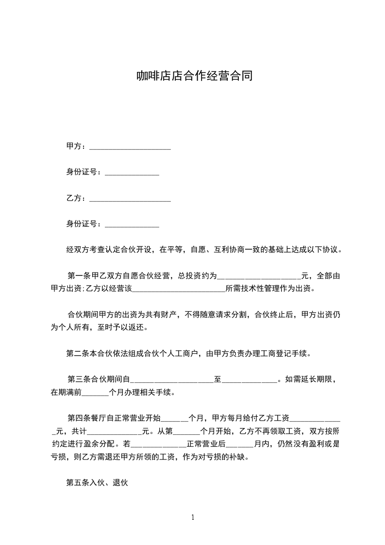 经双方考查认定合伙开设,在平等,自愿、互利协商一致的基础上达成以下协议。