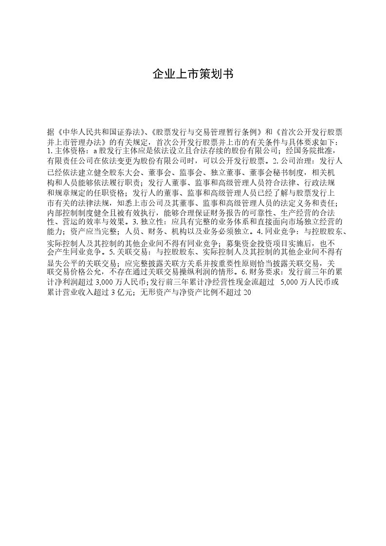 据《中华人民共和国证券法》、《股票发行与交易管理暂行条例》和《首次公开发行股票并上市管理办法》的有关规定,首次公开发行股票并上市的有关条件与具体要求如下:1.主体资格:a股发行主体应是依法设立且合法存续的股份有限公司;经国务院批准,有限责任公司在依法变更为股份有限公司时,可以公开发行股票。2.公司治理:发行人已经依法建立健全股东大会、董事会、监事会、独立董事、董事会秘书制度,相关机构和人员能够依法履行职责;发行人董事、监事和高级管理人员符合法律、行政法规和规章规定的任职资格;发行人的董事、监事和高级管理人员已经了解与股票发行上市有关的法律法规,知悉上市公司及其董事、监事和高级管理人员的法定义务和责任;内部控制制度健全且被有效执行,能够合理保证财务报告的可靠性、生产经营的合法性、营运的效率与效果。3.独立性:应具有完整的业务体系和直接面向市场独立经营的能力;资产应当完整;人员、财务、机构以及业务必须独立。4.同业竞争:与控股股东、实际控制人及其控制的其他企业间不得有同业竞争;募集资金投资项目实施后,也不会产生同业竞争。5.关联交易:与控股股东、实际控制人及其控制的其他企业间不得有显失公平的关联交易;应完整披露关联方关系并按重要性原则恰当披露关联交易,关联交易价格公允,不存在通过关联交易操纵利润的情形。6.财务要求:发行前三年的累计净利润超过3,000万人民币;发行前三年累计净经营性现金流超过5,000万人民币或累计营业收入超过3亿元;无形资产与净资产比例不超过20