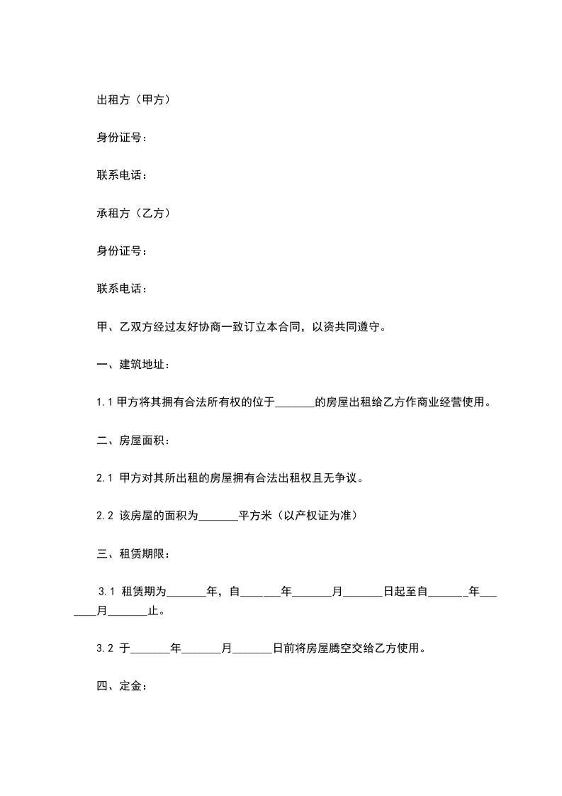 1.1甲方将其拥有合法所有权的位于_______的房屋出租给乙方作商业经营使用。