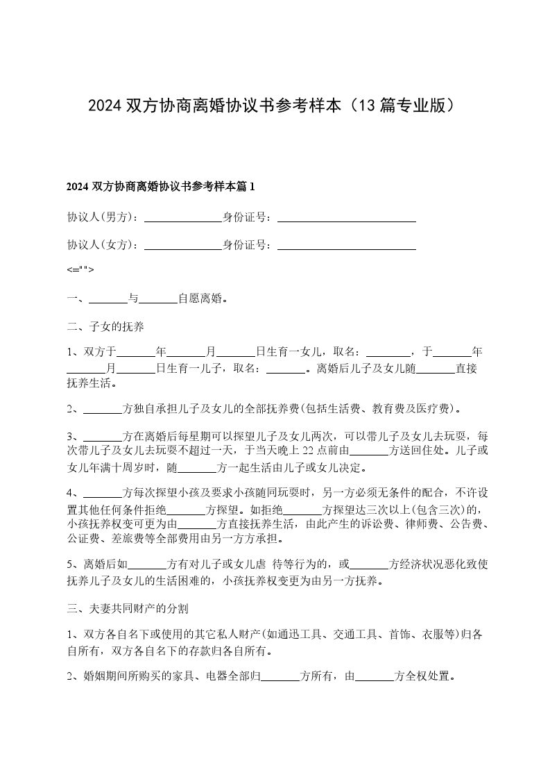 新版双方协商离婚协议参考样式篇13