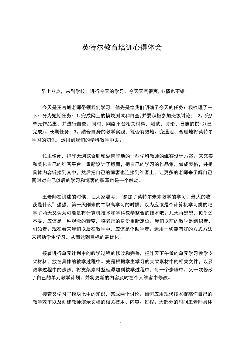 今年7月,我有幸参加未来教育的培训。经过这些天的学习,我真真切切地感受到,未来教育的的确确是着眼学生的未来,关注学生的高级思维,真正实现学习方式的变革,可以实实在在地提高教学效益,帮助学生更好地适应未来。下面我将围绕我参加培训的收获谈谈对英特尔未来教育的认识。