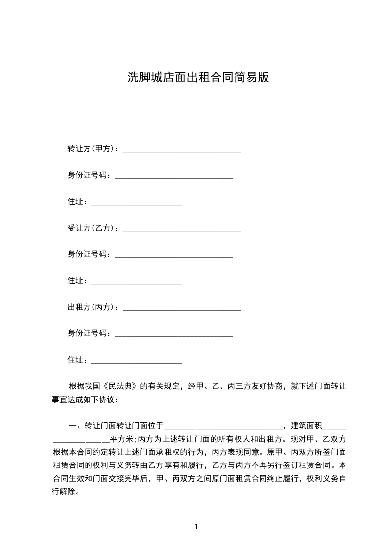 根据我国《民法典》的有关规定,经甲、乙、丙三方友好协商,就下述门面转让事宜达成如下协议: