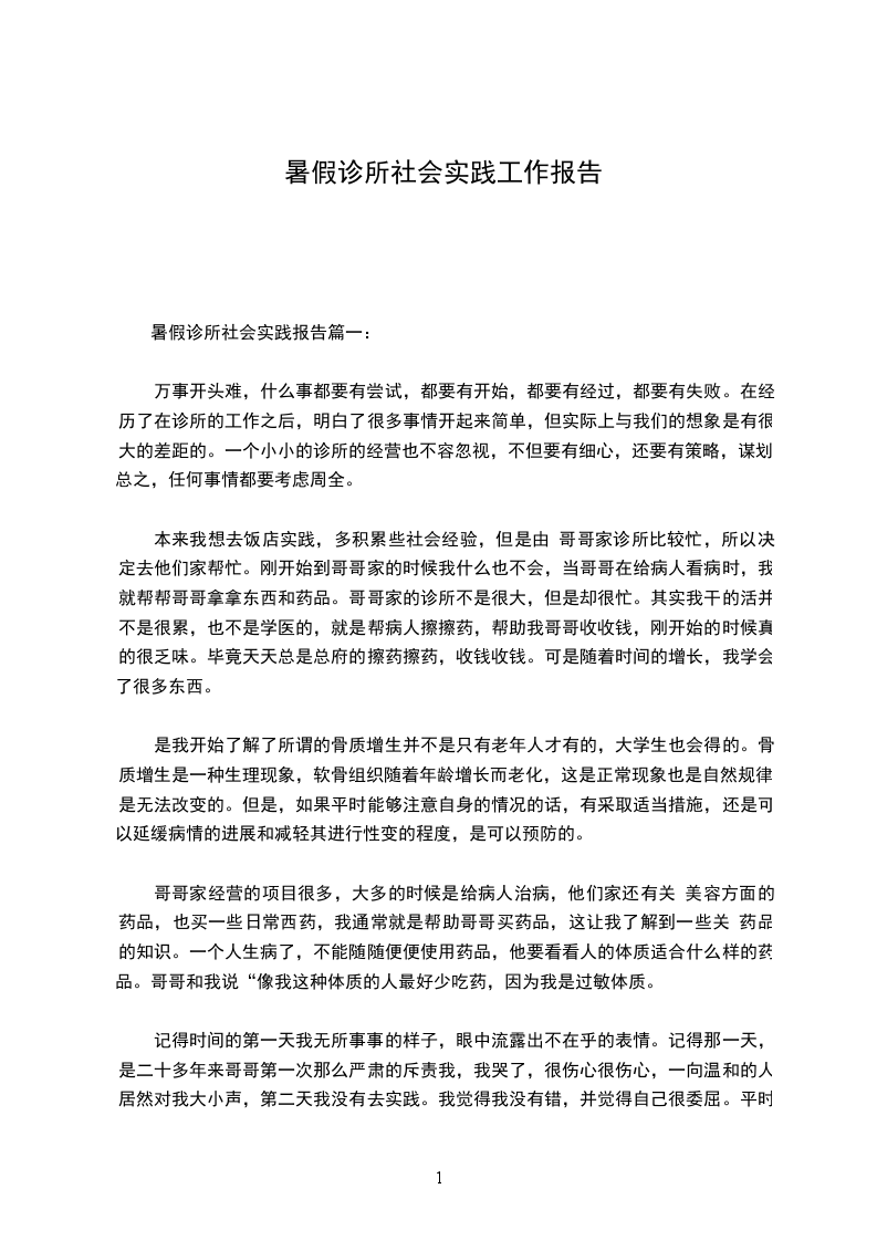 本来我想去饭店实践,多积累些社会经验,但是由 哥哥家诊所比较忙,所以决定去他们家帮忙。刚开始到哥哥家的时候我什么也不会,当哥哥在给病人看病时,我就帮帮哥哥拿拿东西和药品。哥哥家的诊所不是很大,但是却很忙。其实我干的活并不是很累,也不是学医的,就是帮病人擦擦药,帮助我哥哥收收钱,刚开始的时候真的很乏味。毕竟天天总是总府的擦药擦药,收钱收钱。可是随着时间的增长,我学会了很多东西。