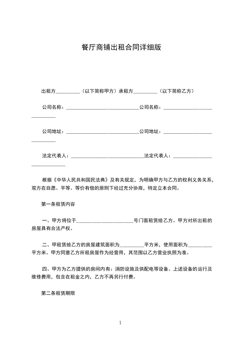 第一条租赁内容