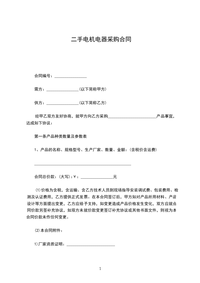 二手车间机器采购合同