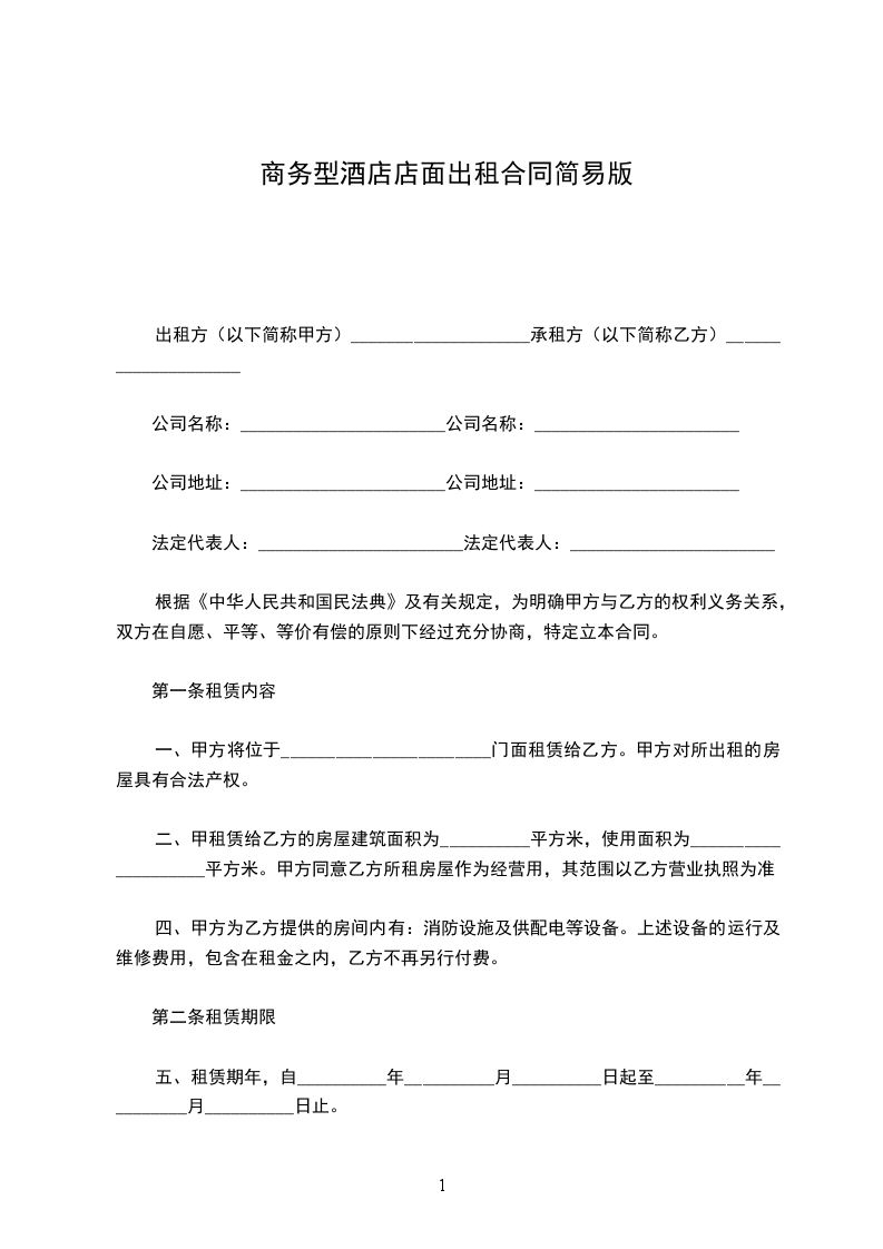 一、甲方将位于_______________________门面租赁给乙方。甲方对所出租的房屋具有合法产权。