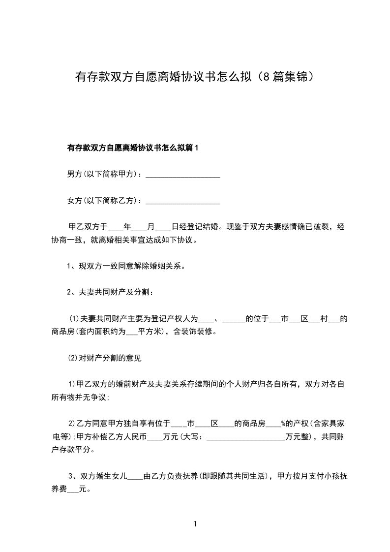 有存款双方自愿离婚协议书怎么拟篇2
