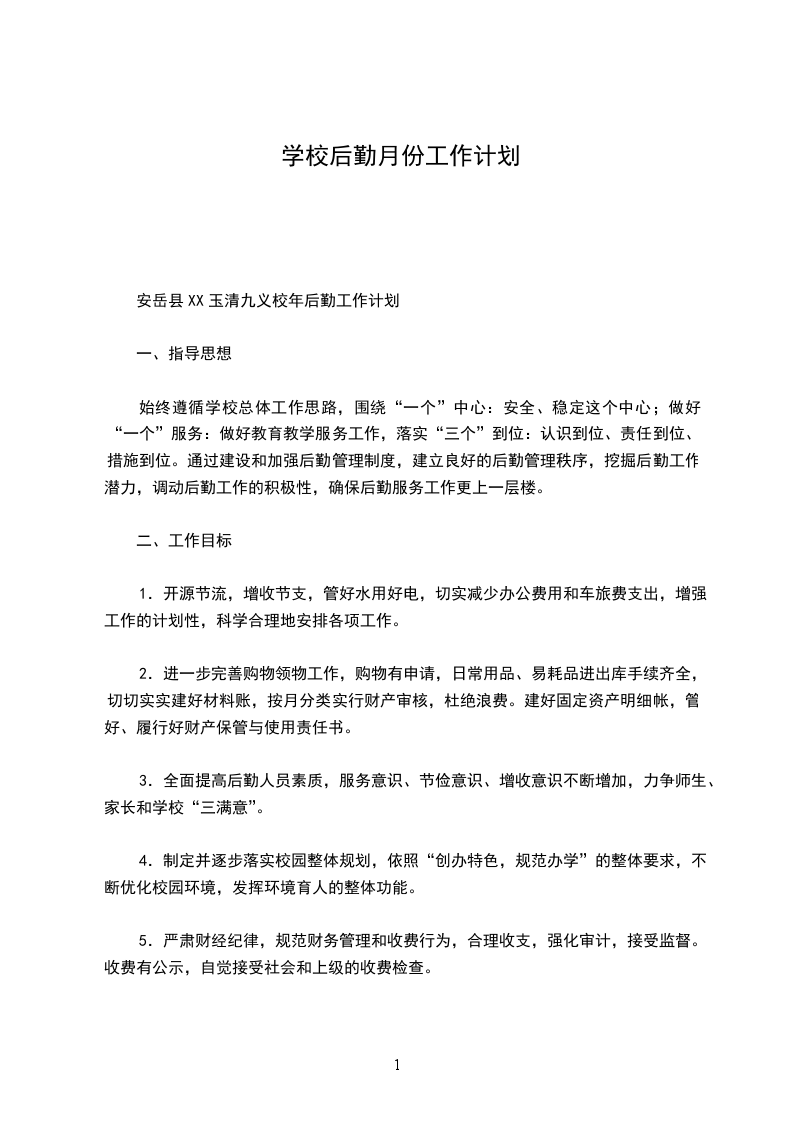 安岳县XX玉清九义校年后勤工作计划