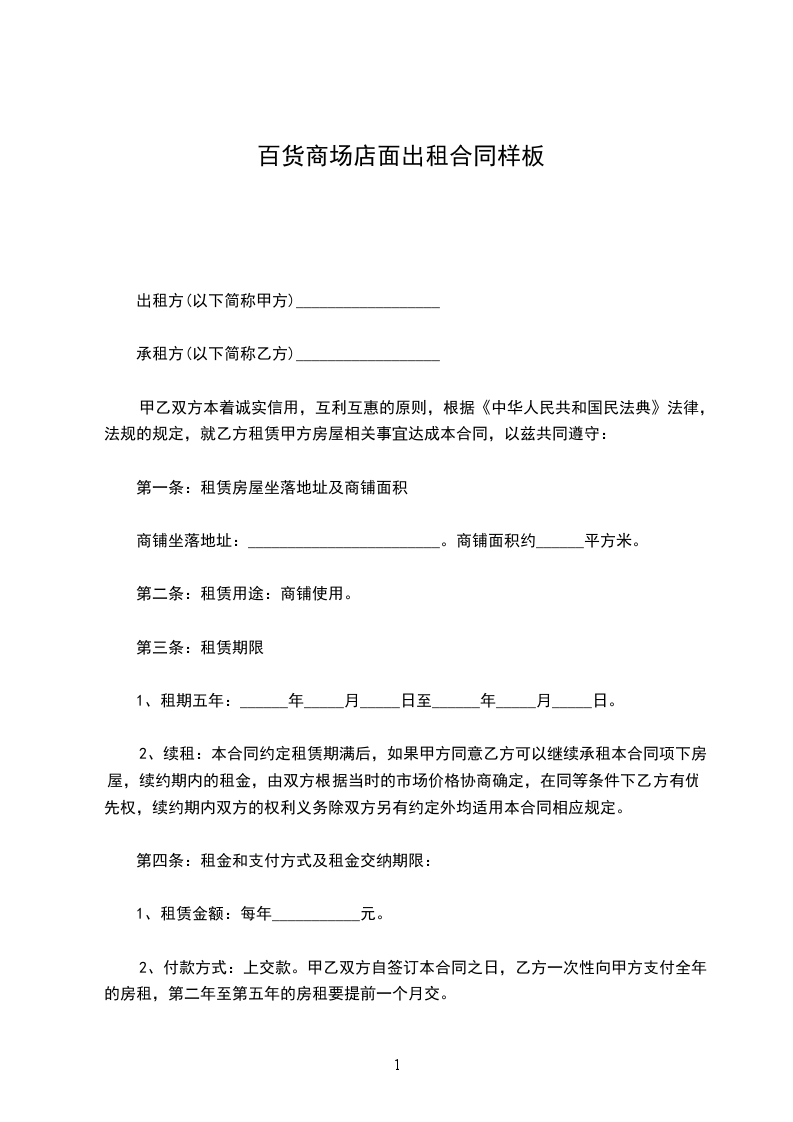 第一年租金为______________元人民币,大写______________圆整。第二年租金经双方协商约定_________________.租金支付方式_________________.