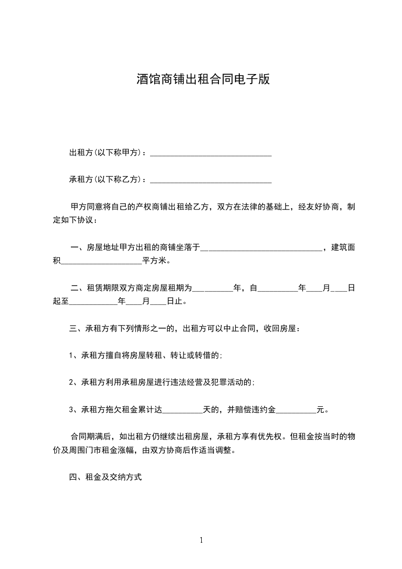 一、房屋地址甲方出租的商铺坐落于______________________________,建筑面积____________________平方米。