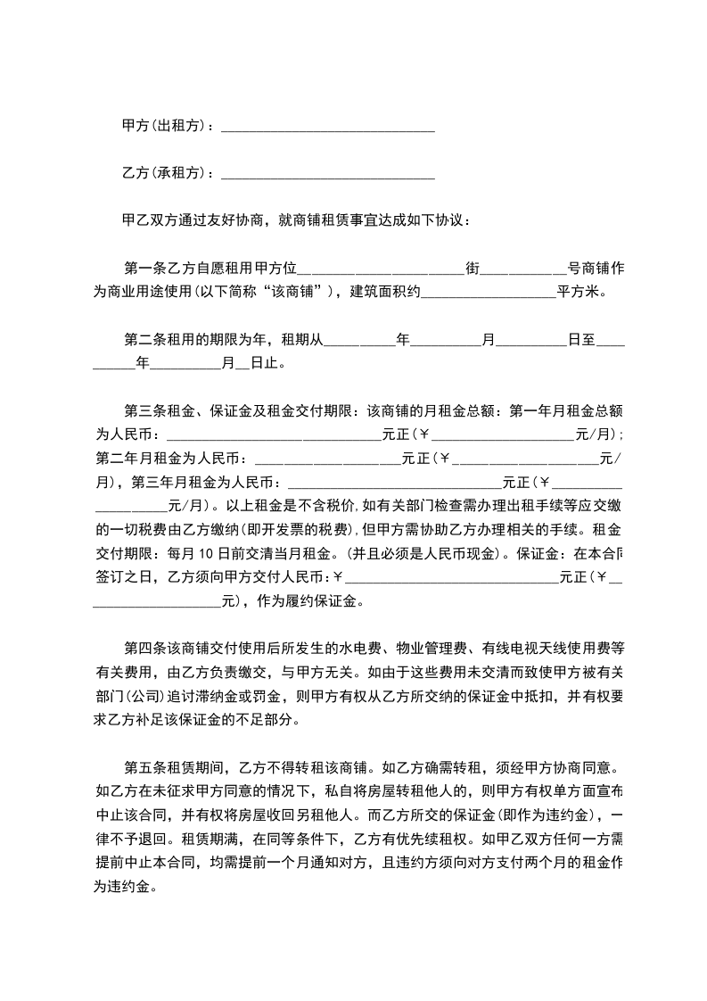甲方出租的商铺坐落地址:_______________________号,建筑面积______________________________平方米。