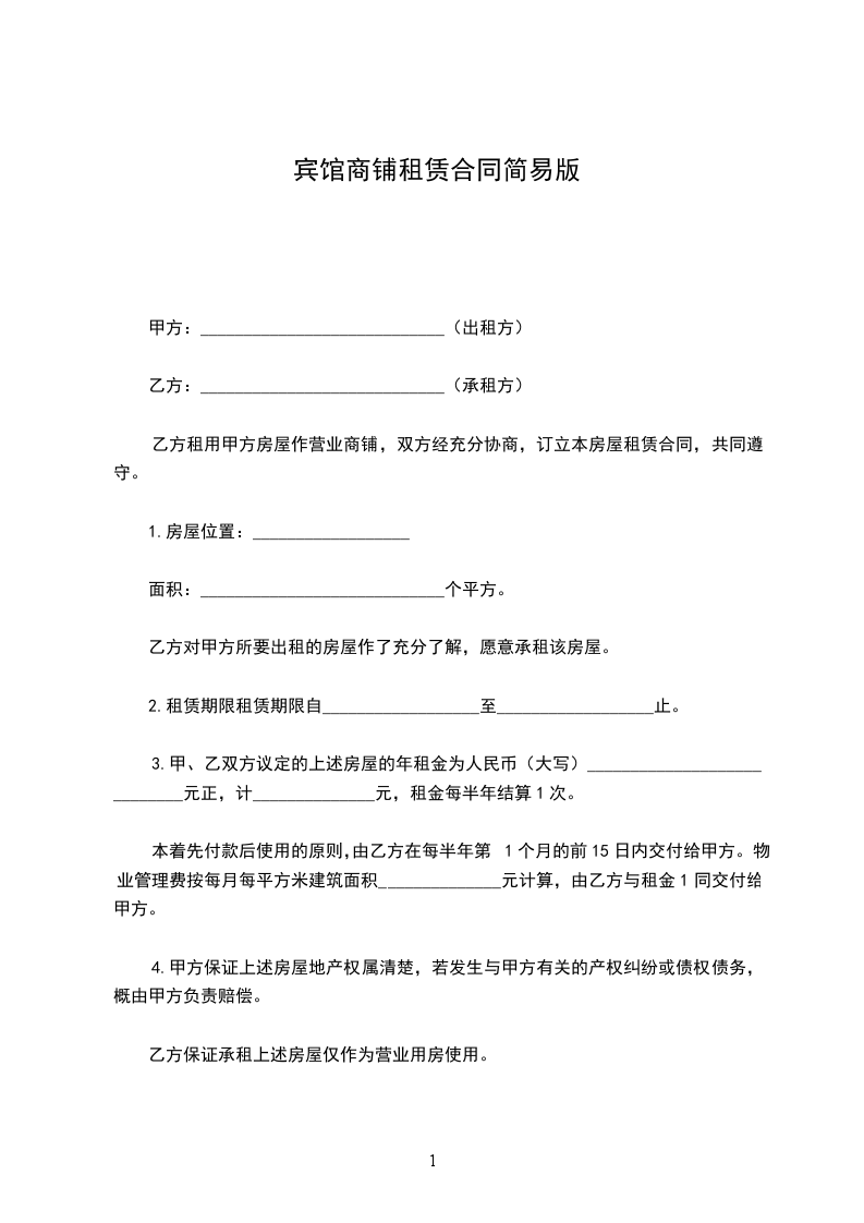 6、乙方应向甲方支付保证金人民币为__________________元,乙方期满后退回。