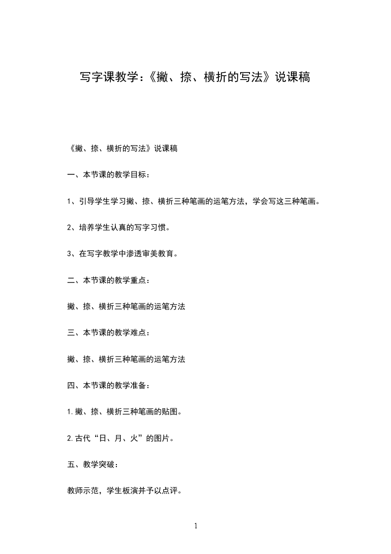 1、引导学生学习撇、捺、横折三种笔画的运笔方法,学会写这三种笔画。