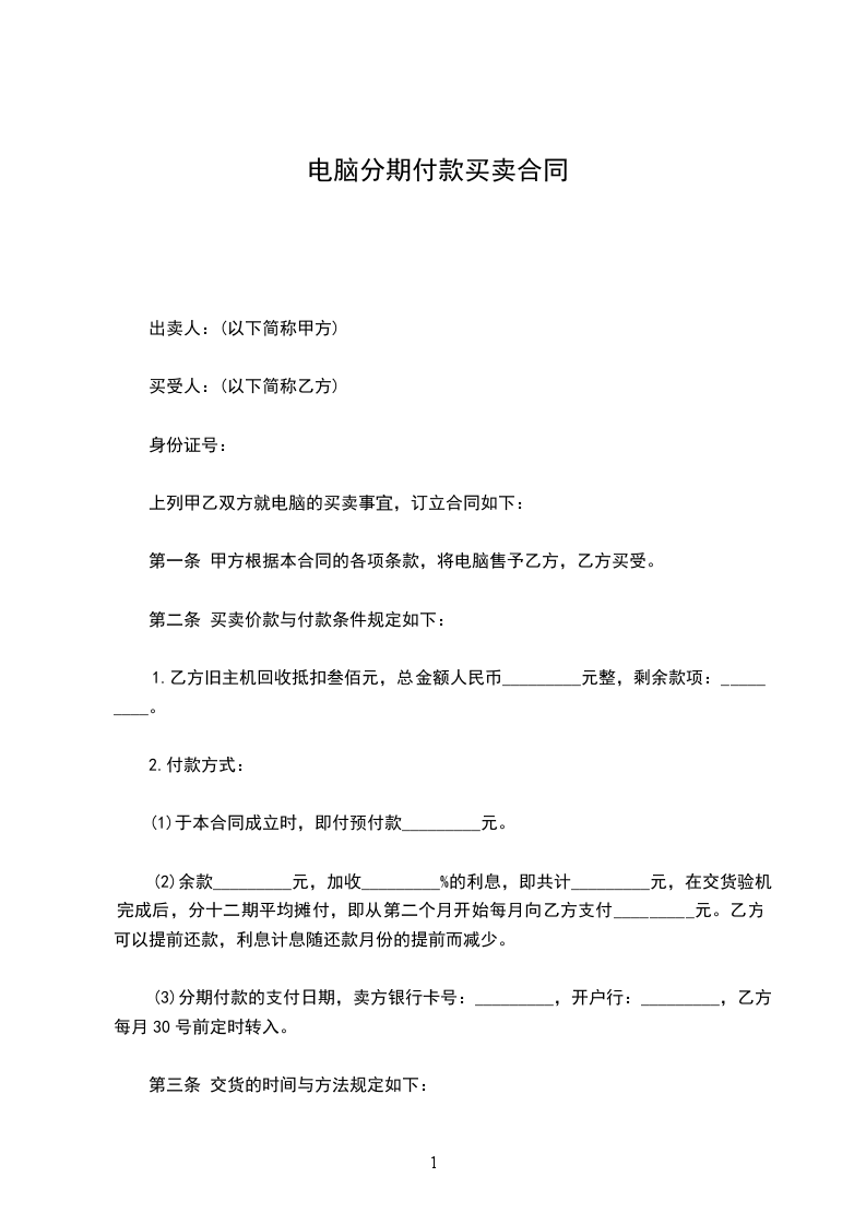 (3)分期付款的支付日期,卖方银行卡号:_________,开户行:_________,乙方每月30号前定时转入。