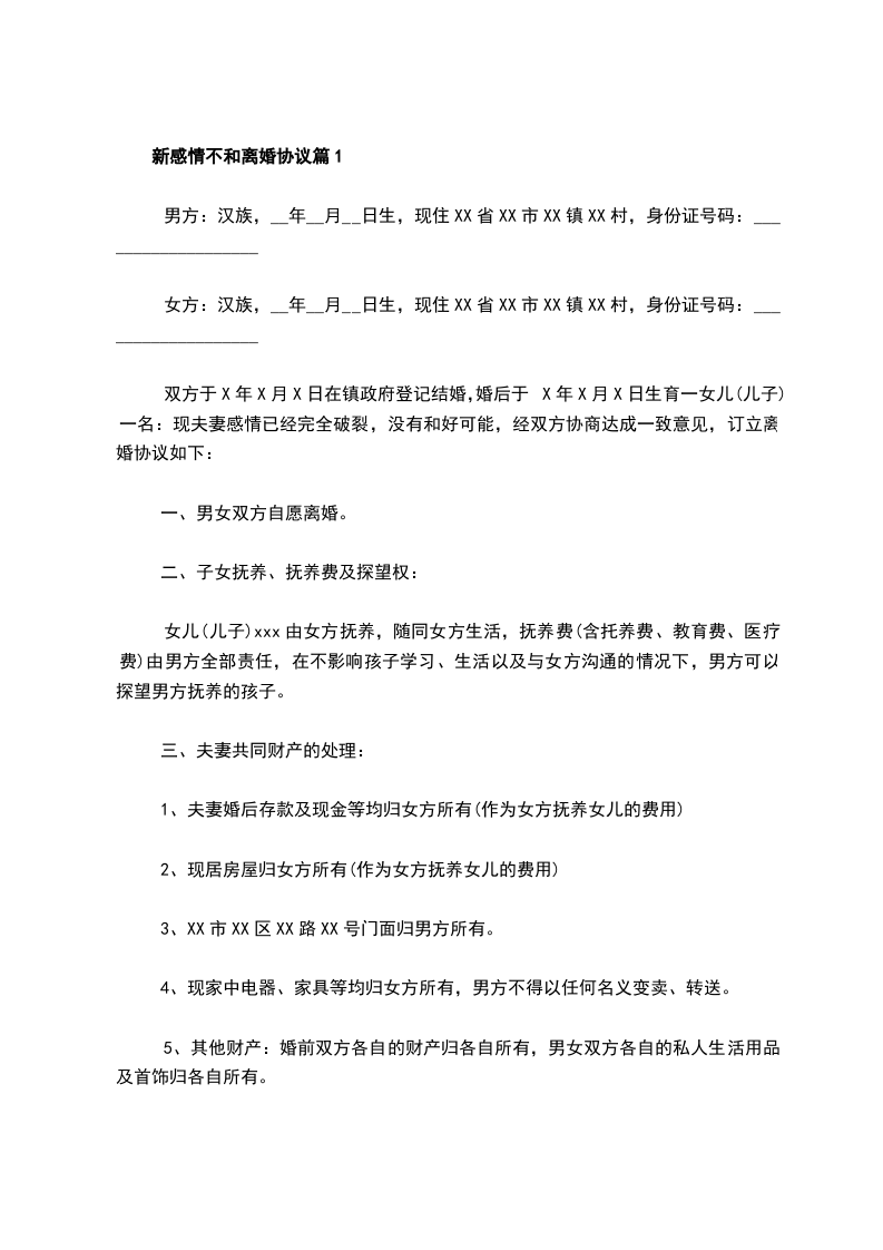 双方于X年X月X日在镇政府登记结婚,婚后于X年X月X日生育一女儿(儿子)一名:现夫妻感情已经完全破裂,没有和好可能,经双方协商达成一致意见,订立离婚协议如下: