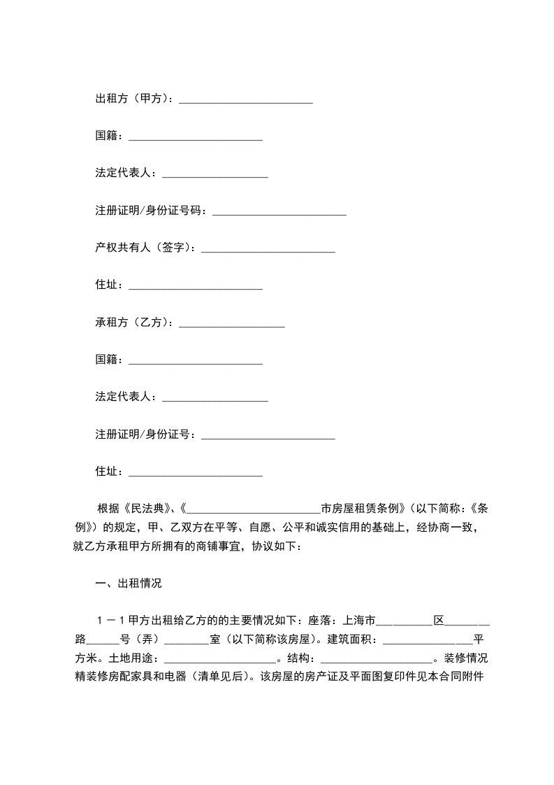 甲方出租的商铺坐落地址:____________号,建筑面积____________平方米。