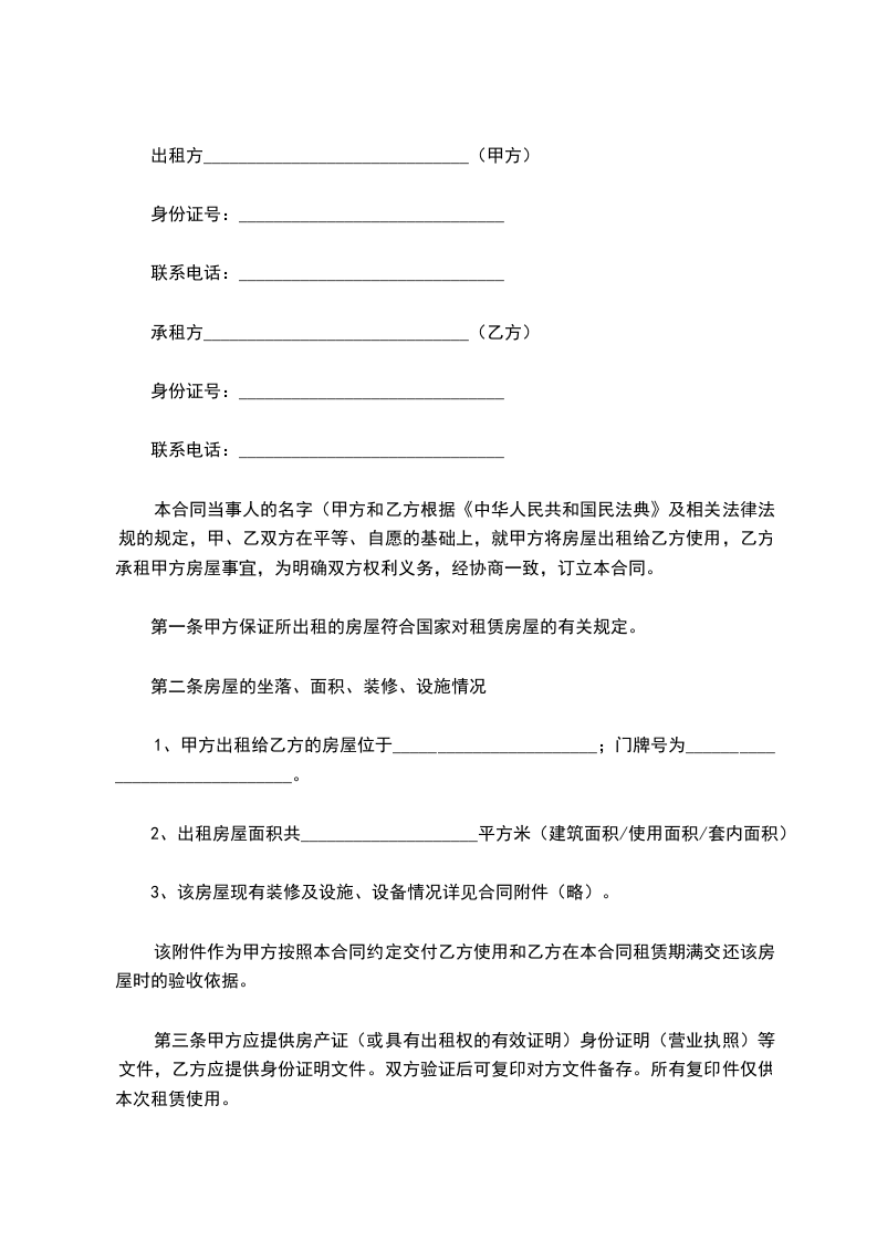 第一条甲方保证所出租的房屋符合国家对租赁房屋的有关规定。