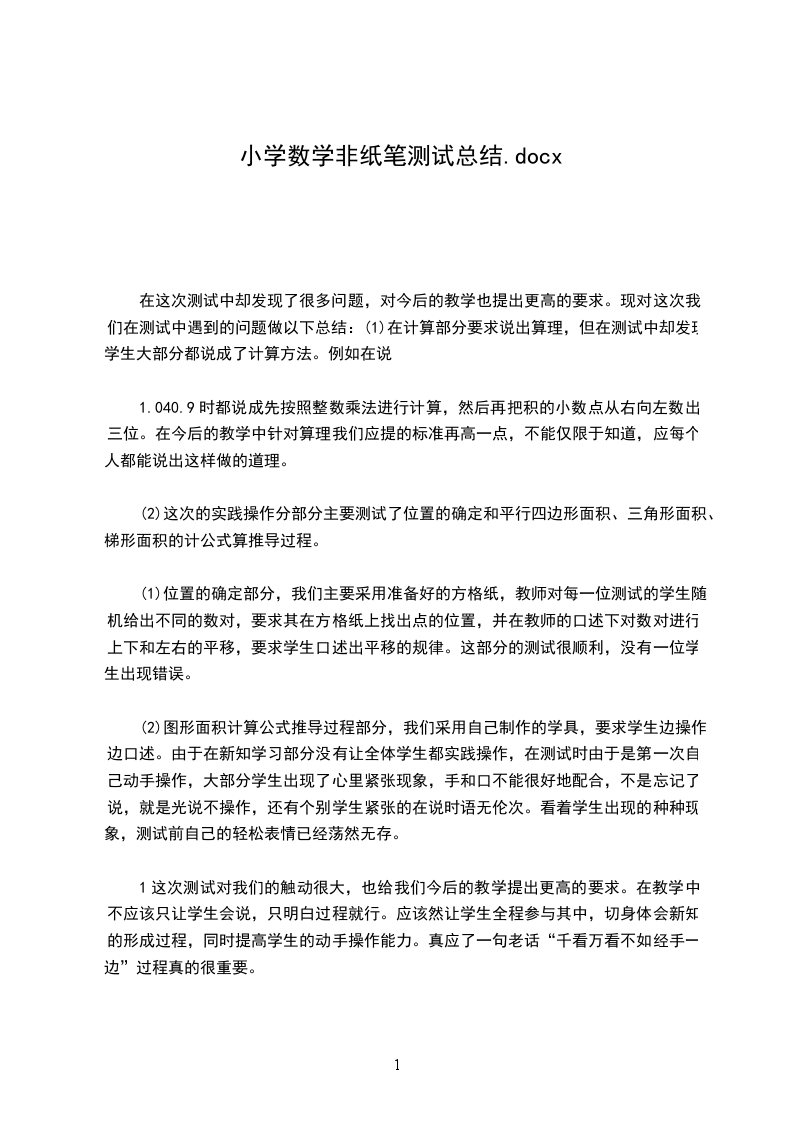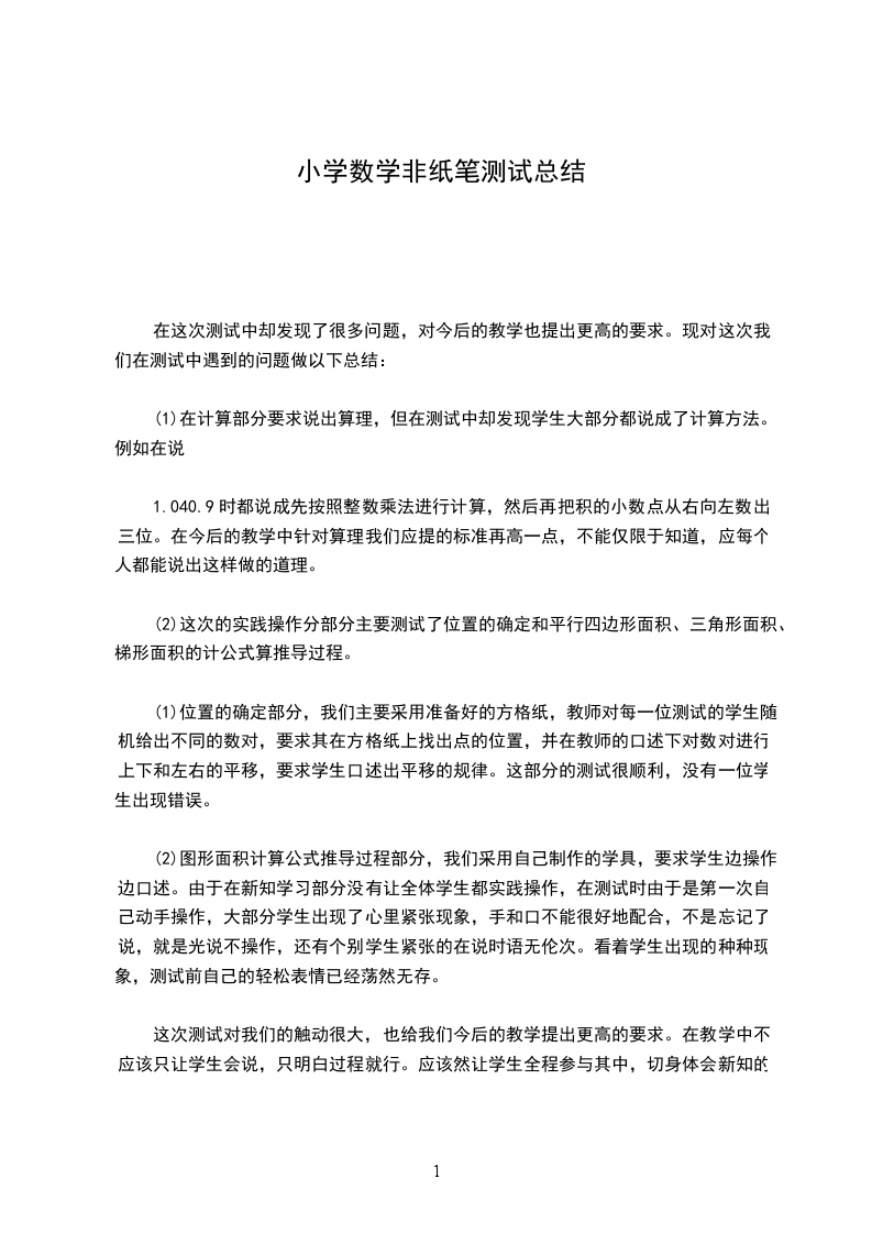 通过本次测试,使我在理念上有了一个新的感悟和提高,深化了学科基础知识,加强了对小学数学学科基本知识和基本理论理解,掌握了学科的一些发展动态,了解到学科理论与技术的新发展,提高了自身更新教学内容和改进教学方法的能力,以及教育教学基本功和学科教学和教育实践能力。