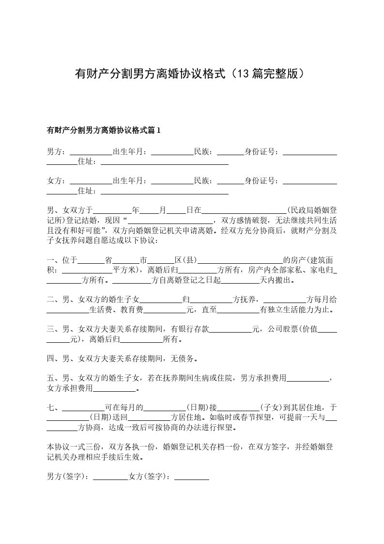 甲方(男方):_________,男,______年____月____日出生,汉族,住________市_____________路_____________________,身份证号:______________________