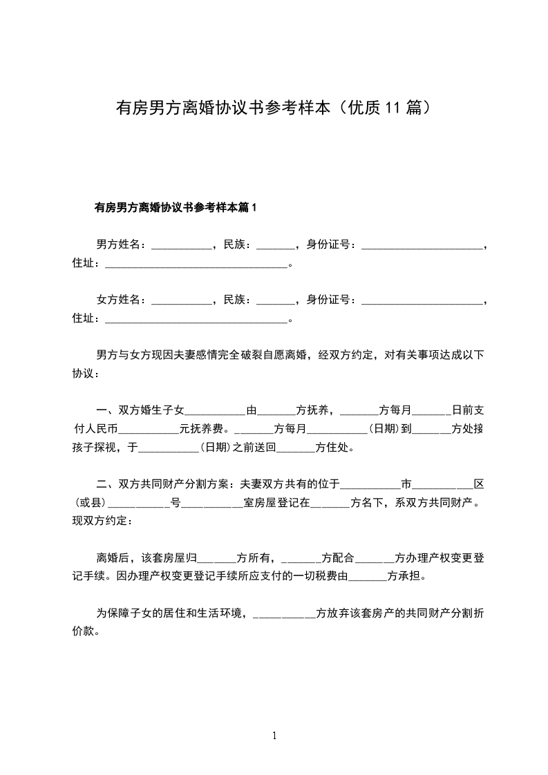 男方:___,男,汉族, 年 月 日生,住__市___街___号,身份证号码:__________________