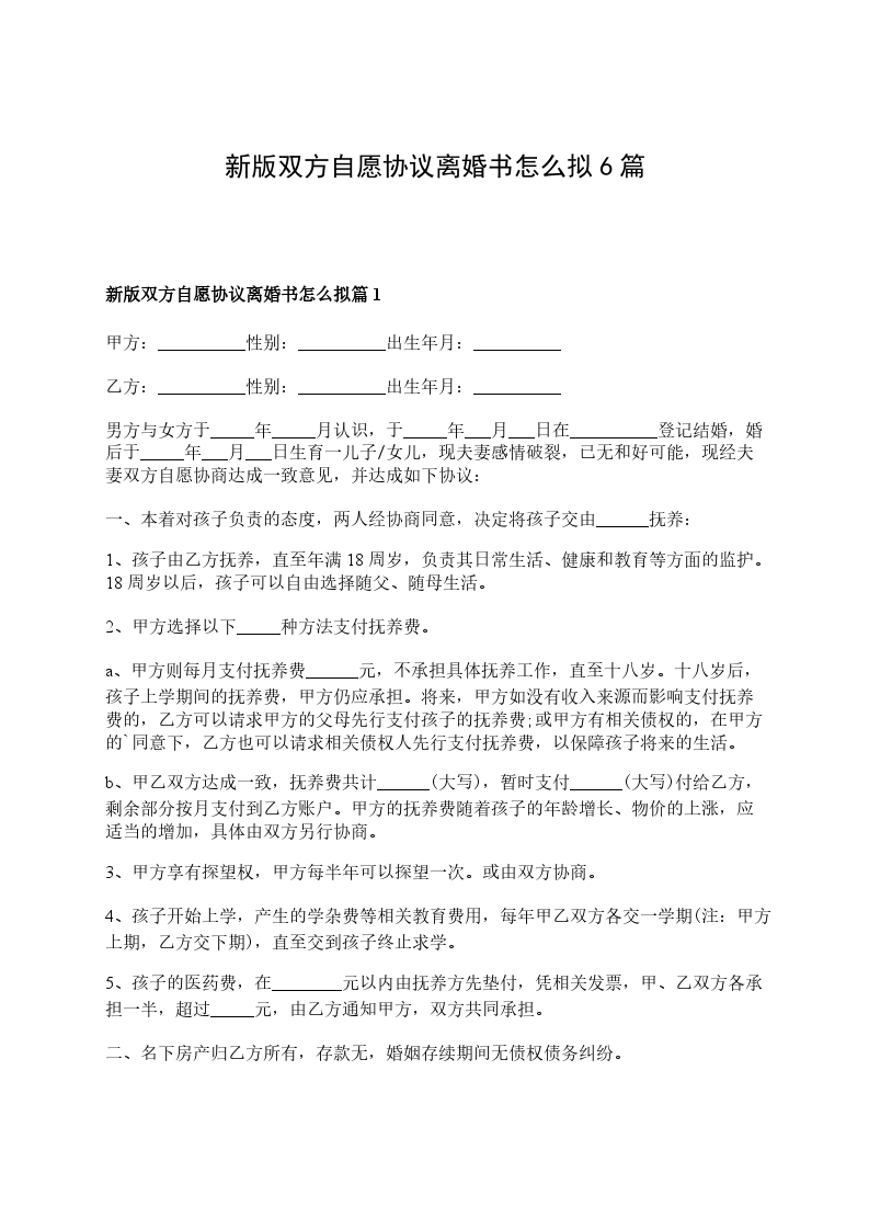 一、本着对孩子负责的态度,两人经协商同意,决定将孩子交由______抚养: