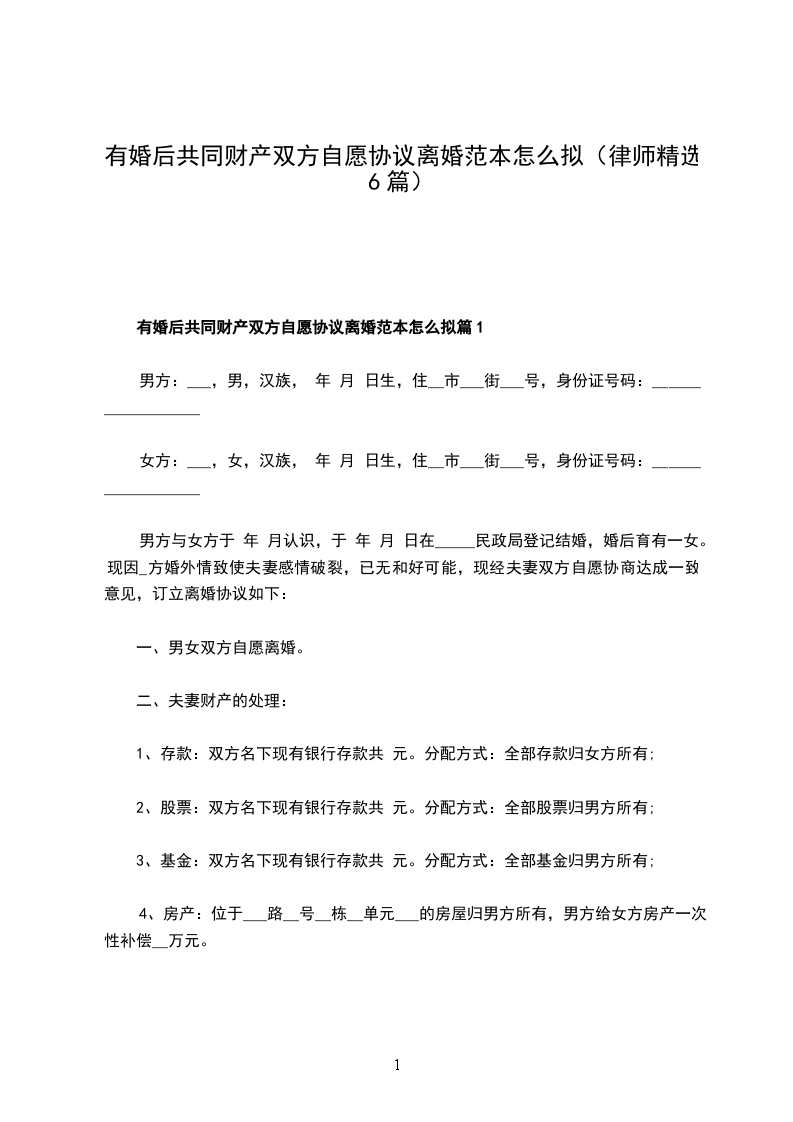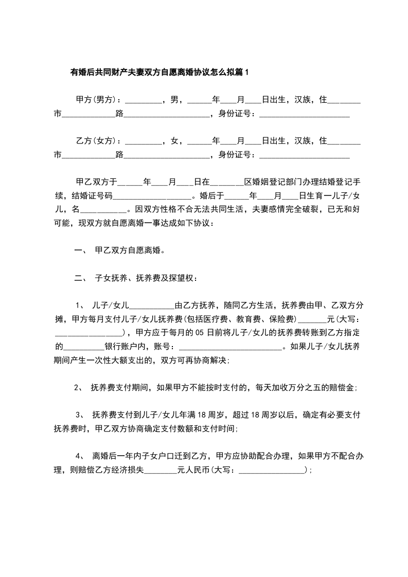 有婚后共同财产夫妻双方自愿协议离婚书怎么拟篇2