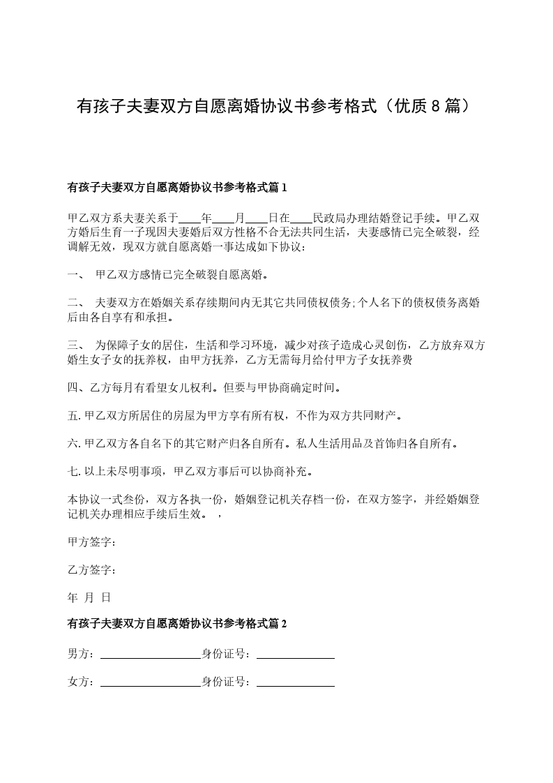 有孩子夫妻自愿协议离婚范本如何写篇8