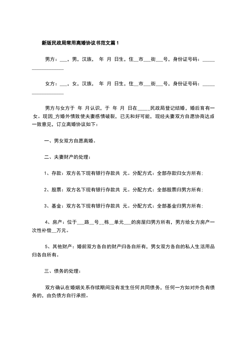 八、本协议一式三份,男、女双方各执一份,婚姻登记机关存档一份。